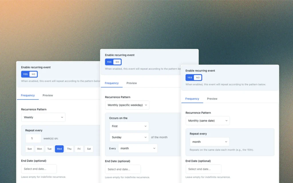 Display recurring events beautifully in Bricks Builder or Elementor. No duplicate posts. No complex calendar plugins.